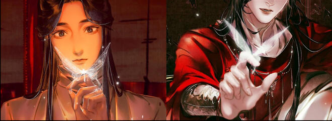 The main character of tgcf/heaven official's blessing, he is an 800+ year old martial god newly ascended for the 3rd time as the story begins. 800 years ago, he was a crown prince adored by all around, but after tragedy struck his kingdom, he fell into ruin--banishment from heaven and spurned by the heavenly realm and mortal realm alike.
